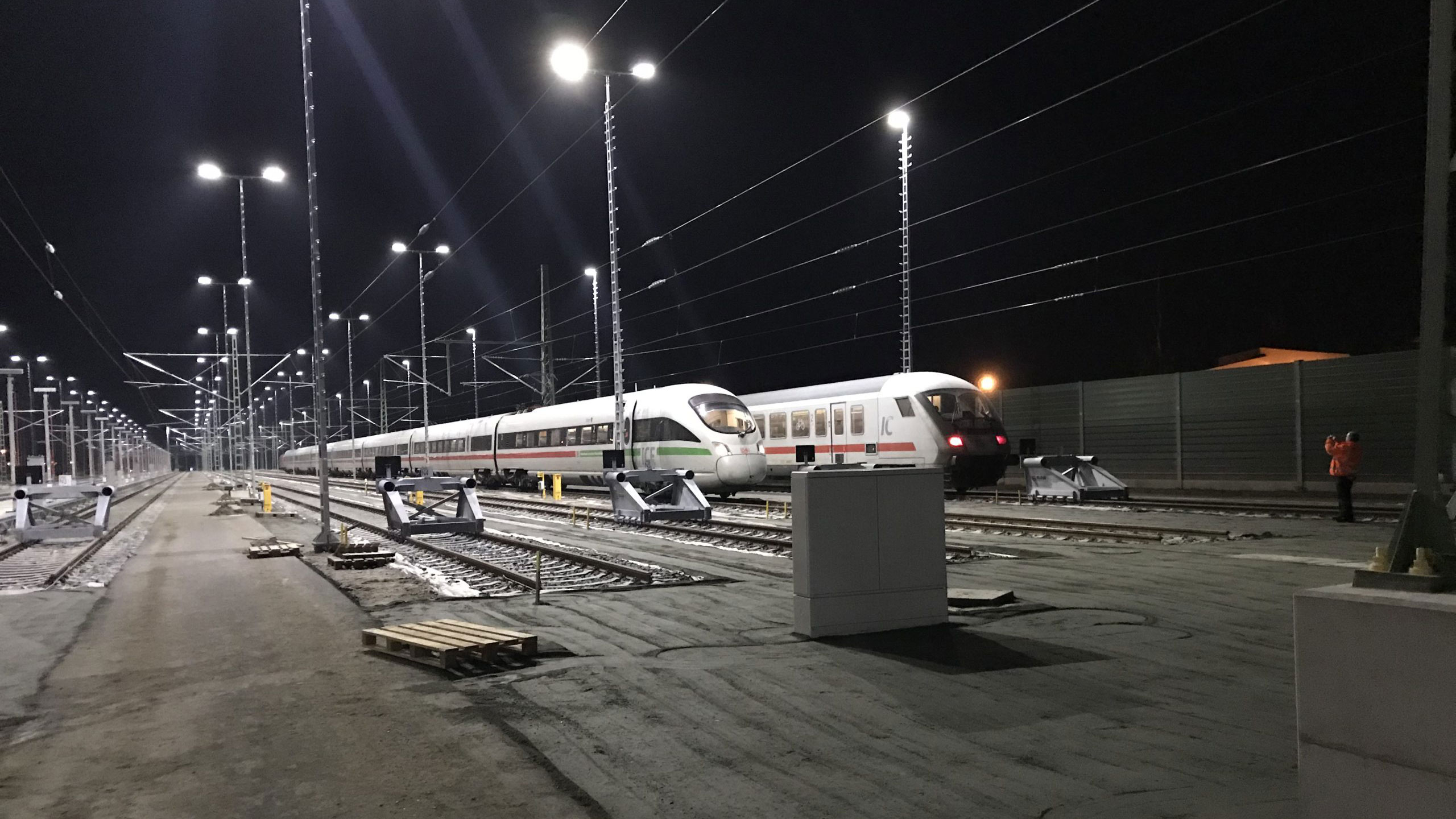 Durch die Einführung der neuen elektrischen Triebzüge vom Typ IC4 ist der Neubau des Wartungsstandortes Stralsund erforderlich geworden. Das Drehkreuz des Bahnfernverkehrs im Nordosten verbindet München, Frankfurt, NRW, Berlin und Hamburg mit Rostock, Stralsund, Greifswald und der Insel Rügen. Durch den Neubau einer Abstellanlage können nun sieben Züge gleichzeitig einem Qualitäts- und Komfortcheck unterzogen werden, bevor es auf die nächste Reise geht.